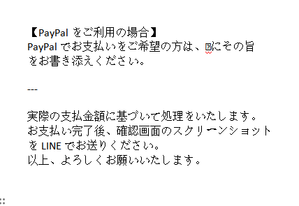 PayPalでお支払いをご希望の方は、🟢にその旨をお書き添えください。